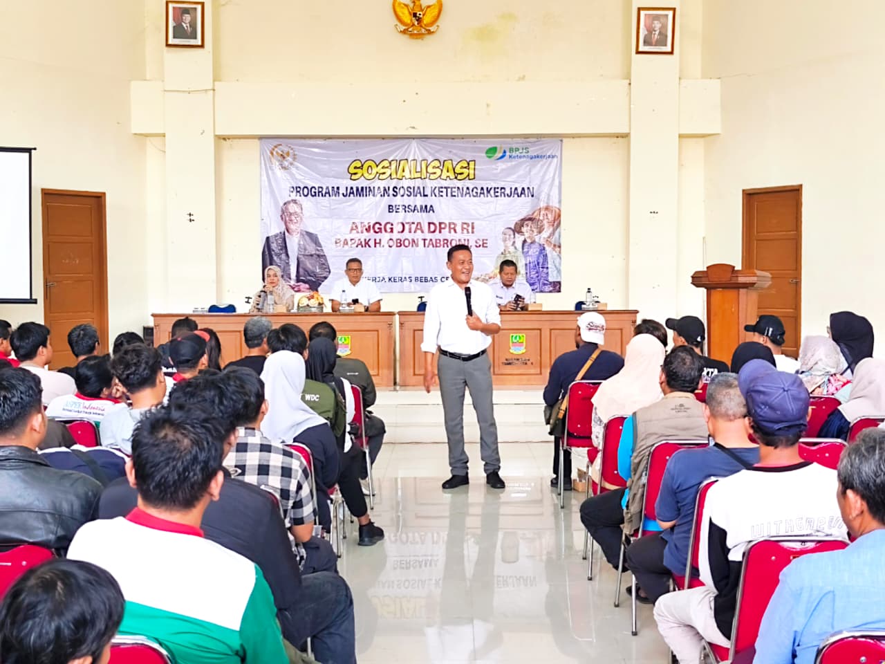 Dalam sambutannya, H. Obon Tabroni menjelaskan bahwa sebagai anggota Komisi IX DPR RI, dirinya memiliki mitra kerja di bidang ketenagakerjaan seperti BPJS Ketenagakerjaan, BPJS Kesehatan, hingga Badan Gizi Nasional. Oleh sebab itu, sosialisasi ini dianggap penting untuk meningkatkan pemahaman masyarakat mengenai manfaat perlindungan jaminan sosial.