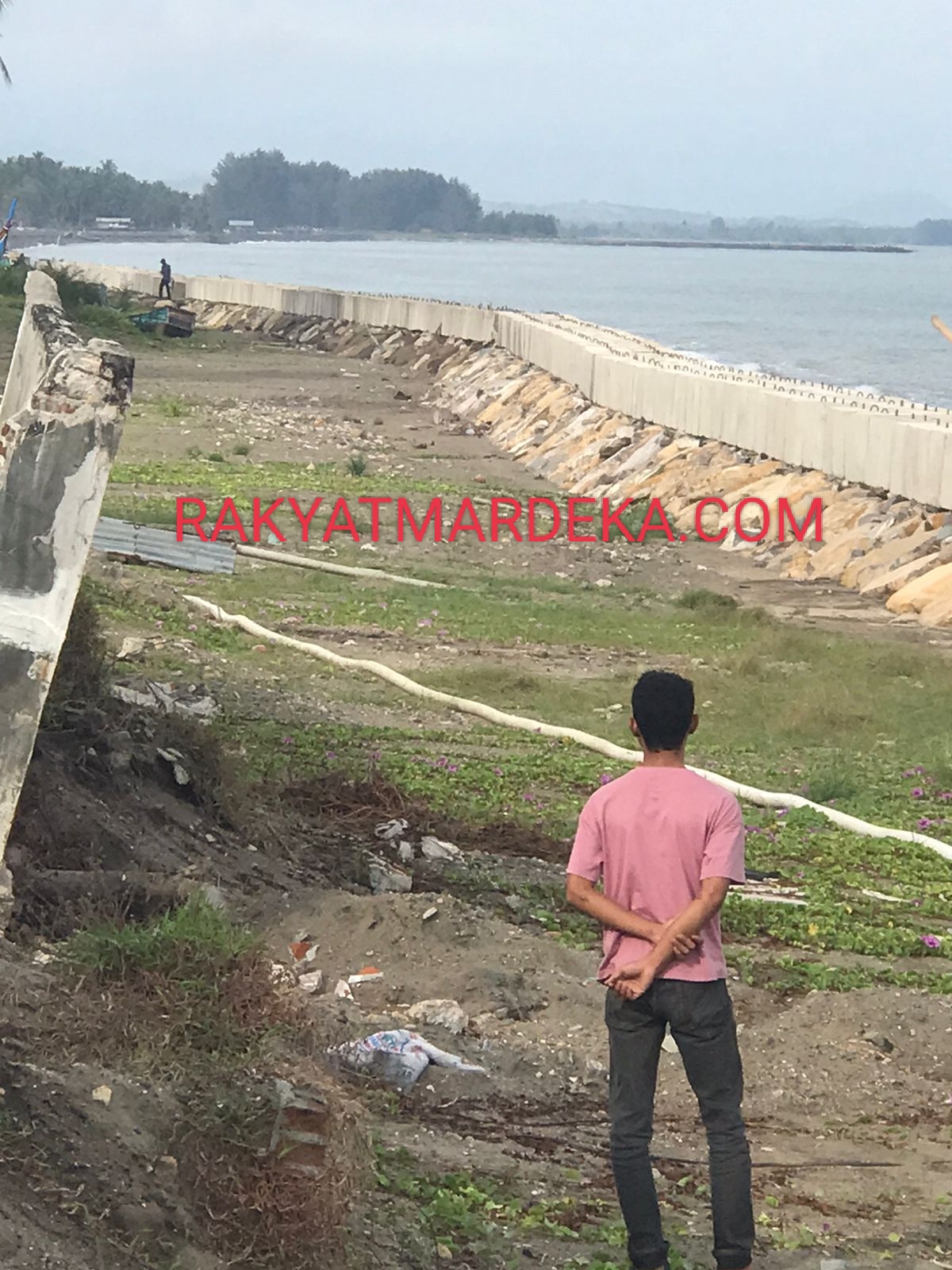 Pantauan di lapangan Senin, – (16- Febuari- 2026 ) memperlihatkan struktur batu penahan ombak tampak bergeser dan tidak lagi presisi. Kondisi tersebut memunculkan dugaan kuat bahwa pekerjaan tidak dilaksanakan sesuai spesifikasi teknis.