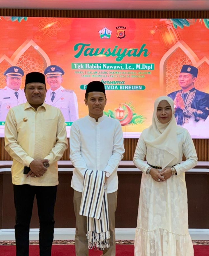 Dalam suasana penuh kehangatan, Bupati H. Mukhlis tampak hadir bersama sang istri dengan balutan busana muslim yang sederhana namun elegan. Kehadiran keduanya mencerminkan komitmen pemerintah daerah dalam mendukung kegiatan keagamaan sebagai pondasi moral pembangunan di Kabupaten Bireuen.