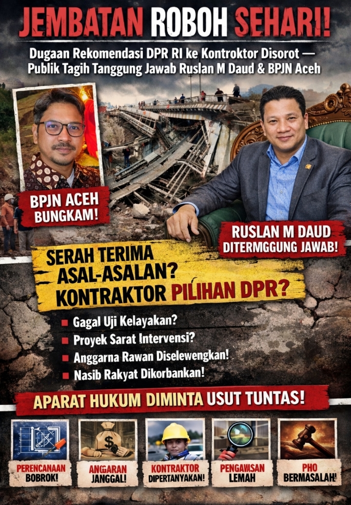 Jika kasus ini tidak dibuka secara terang-benderang, robohnya jembatan bukan hanya mencoreng wajah pembangunan, tetapi juga memperdalam krisis kepercayaan terhadap pengelolaan proyek negara.