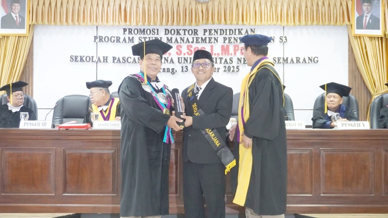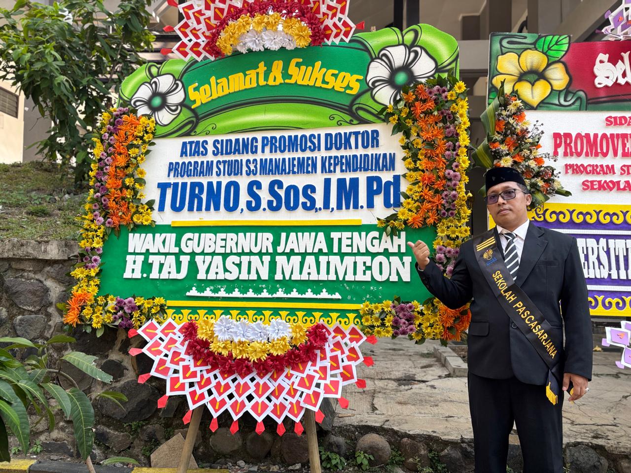 Perjalanan panjang itu mencapai puncaknya ketika Mas Turno berhasil menyelesaikan studi S3 (Doktor)pada hari senin kemarin (13.10. 25) dan dinyatakan lulus oleh 8 para penguji yang semuanya adalah profesior dibidangnya dan acara berlokasi di gedung UNNES semarang.,