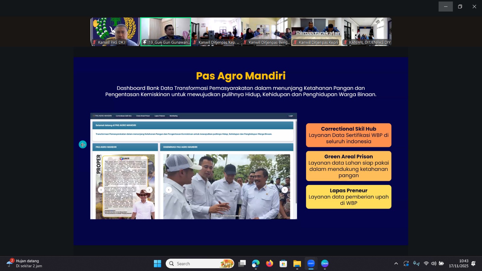 Sosialisasi Pelaporan pada Mekanisme Satu Data Pemasyarakatan digelar di Aula Lapas Kelas III Pagar Alam pada Senin, 17 November 2025. Kegiatan ini bertujuan meningkatkan pemahaman jajaran pemasyarakatan mengenai pentingnya pelaporan yang terintegrasi untuk menghasilkan data yang akurat, konsisten, dan dapat dipertanggungjawabkan.