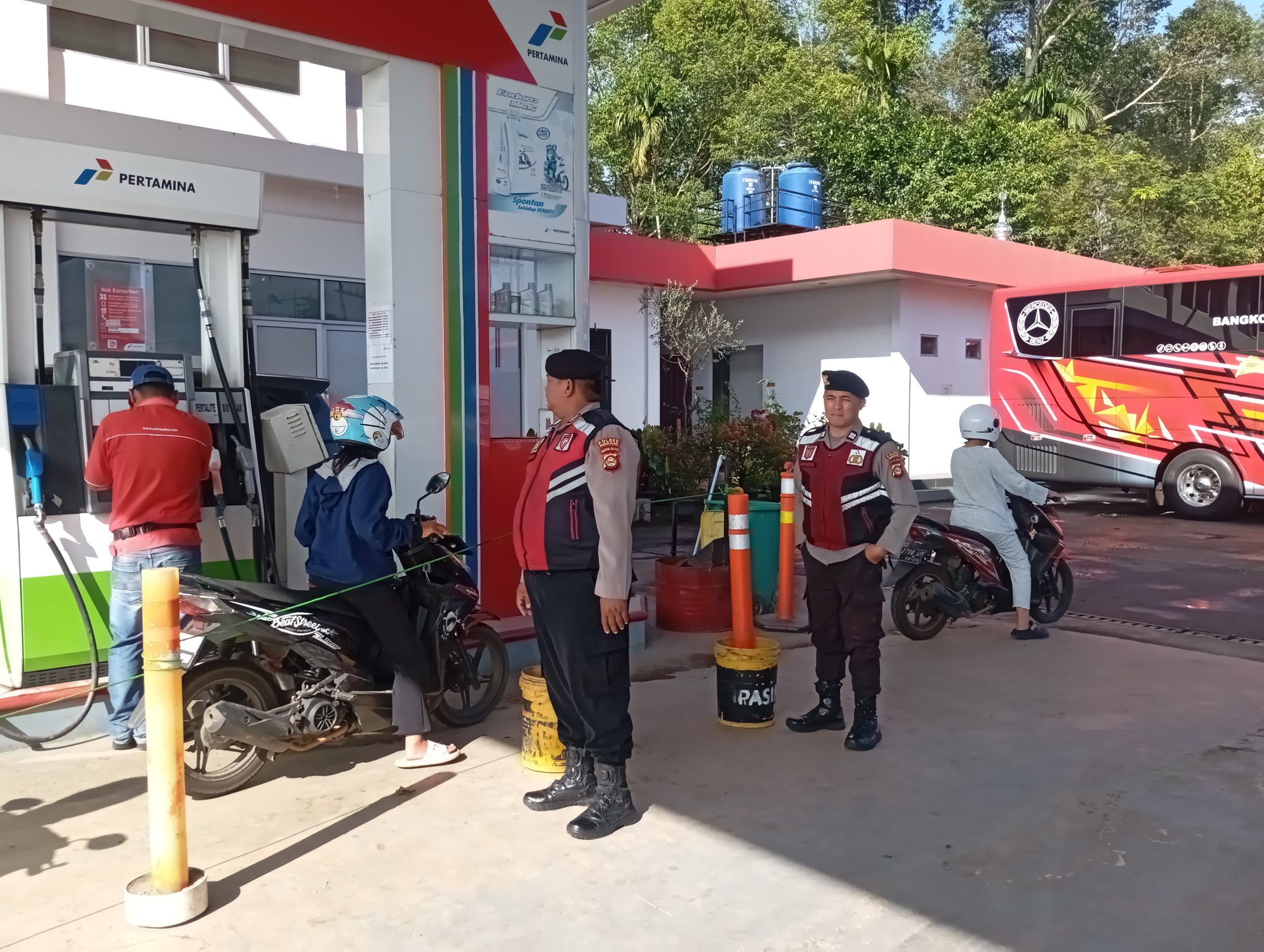 Sementara itu, Kasi Humas Iptu Mansyur, Amd. Kep., S.H. menambahkan bahwa “Kami akan tindak tegas apabila ditemukan praktik penimbunan, penyalahgunaan distribusi, maupun upaya spekulasi harga. Masyarakat tidak perlu panik, stok BBM aman dan distribusi terus kami kawal secara maksimal agar tetap lancar dan tepat sasaran,” tegasnya. (RmKf)