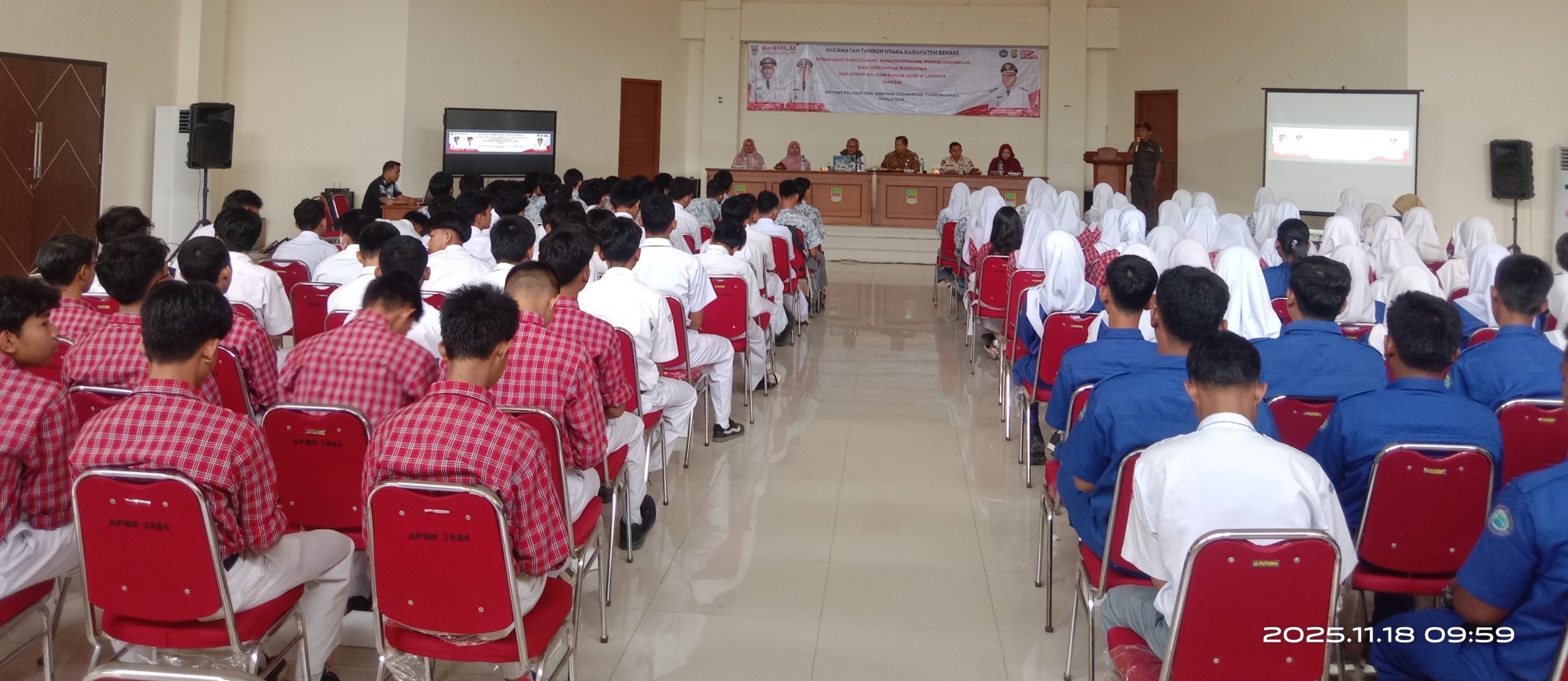 Rakyatmerdeka.com,Tambun Utara, Bekasi ~ Pemerintah Kecamatan Tambun Utara menggelar sosialisasi pencegahan NAPZA bagi pelajar SMA dan SMK sebagai langkah memperkuat edukasi dan kesadaran generasi muda terhadap bahaya narkoba.