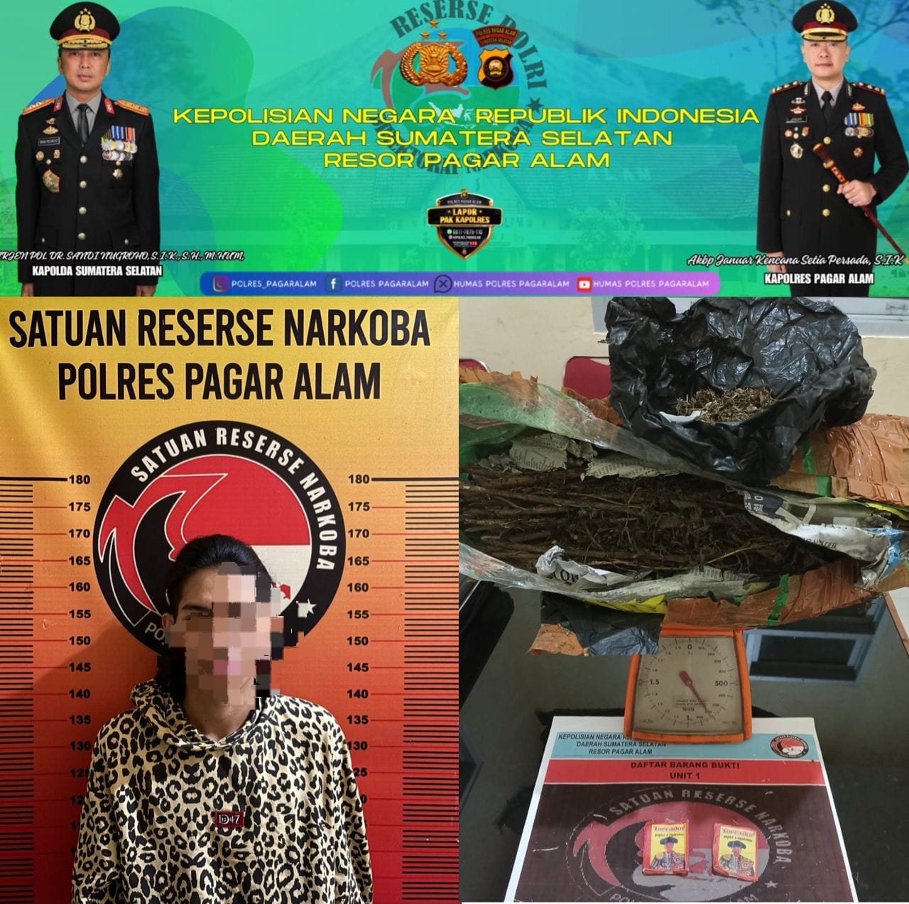 Sat Resnarkoba Polres Pagar Alam, Amankan Hampir Satu Kilogram Ganja, Satu Tersangka Di Tangkap