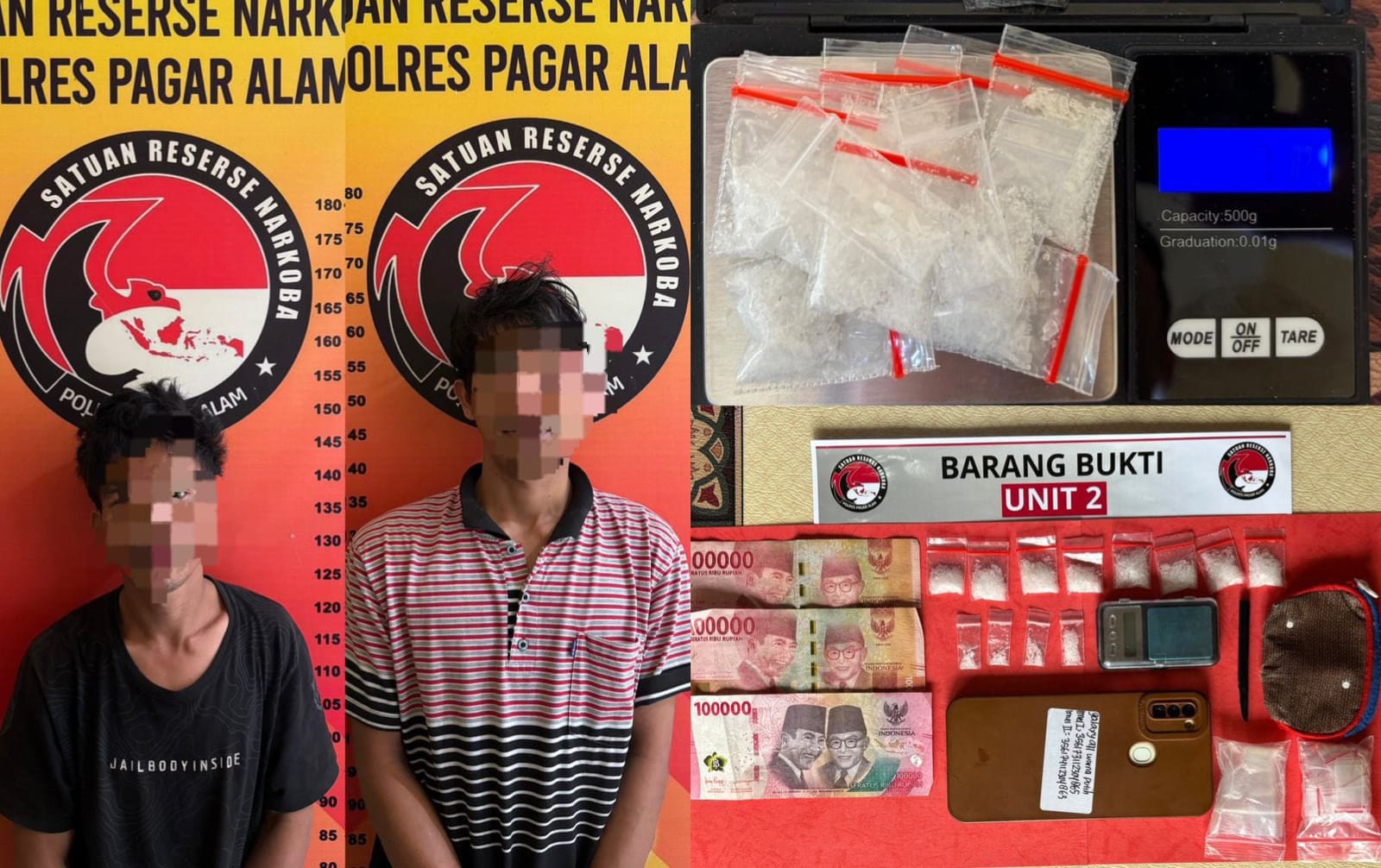 “Untuk saat ini kedua pelaku telah diamankan di Satres Narkoba Polres Pagar Alam guna dilakukan pemeriksaan dan pengembangan lebih lanjut,” tambahnya.