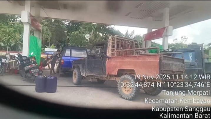 Temuan ini terekam dalam video berdurasi 44 detik, diambil pada 19 November 2025 pukul 11.14 WIB, yang menunjukkan aktivitas pengisian solar dalam jumlah besar oleh beberapa kendaraan roda empat dan bak terbuka.